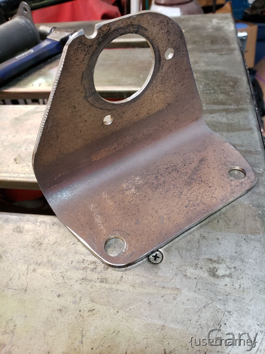 Using this setup, I was able to determine that there is enough clearance for the EPS with the motor placed at around the 10:00 position. The EPS front mounting tabs location was transferred over to the bracket and the EPS bolted in place.