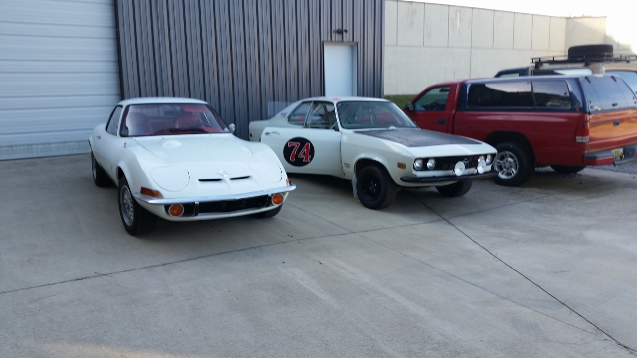 My 70 Opel GT and a friends Opel Manta Rally car.