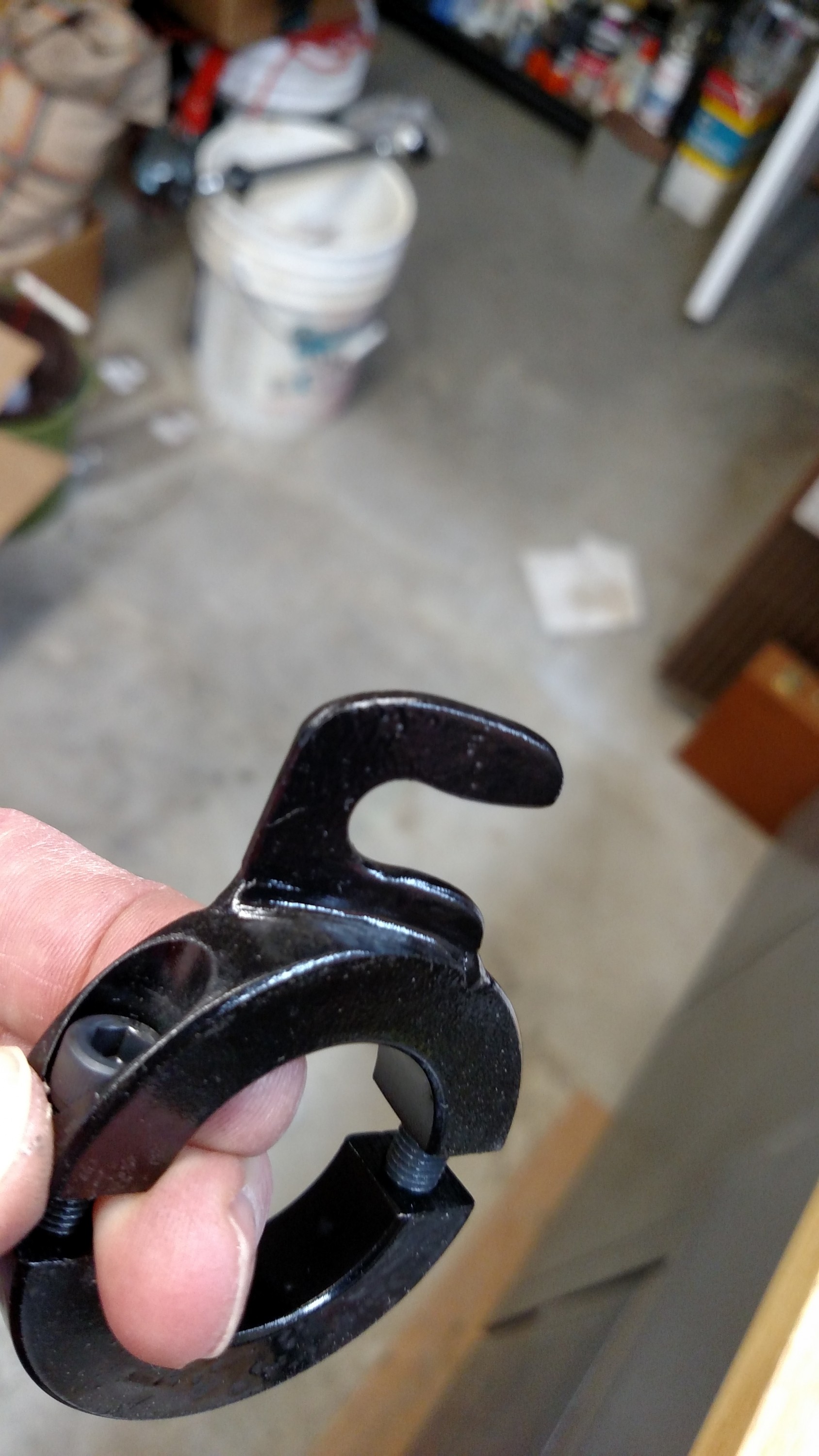 Custom fabricated brake cable guide that clamps onto the Speedway Motors link tube.