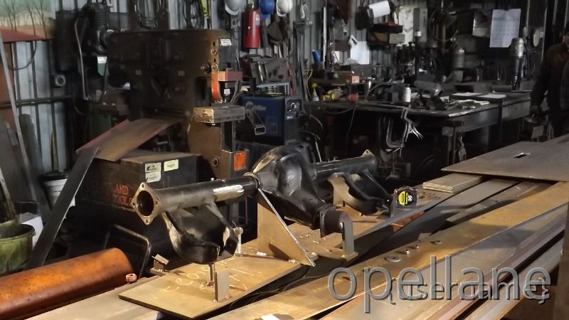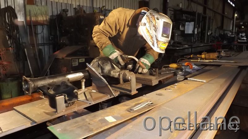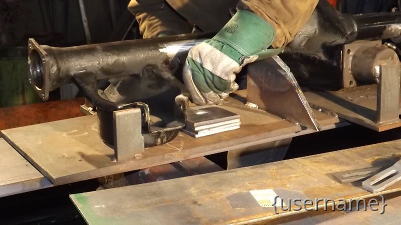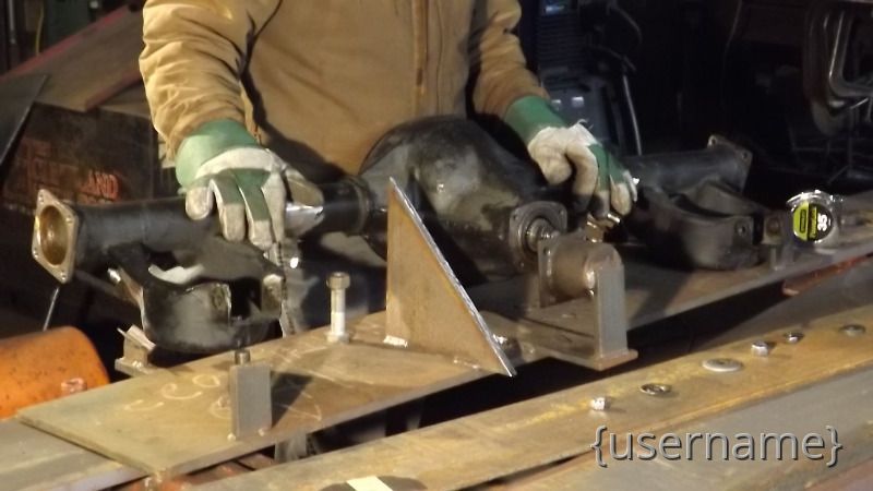 Jeff had made a Jig to hold the rearend so the sway bar bracket could be installed properly and evenly to both axle tubes.Then he worked his magic and the bracket were installed...took a while to get the rear located into the welding Jig