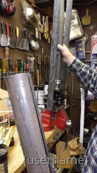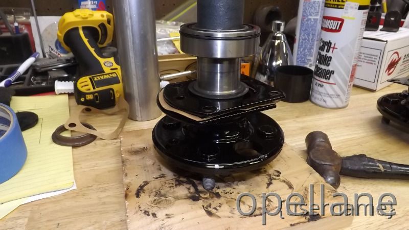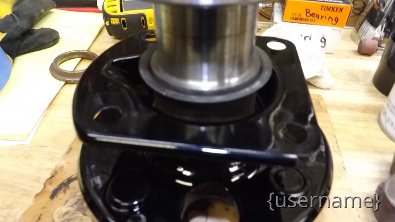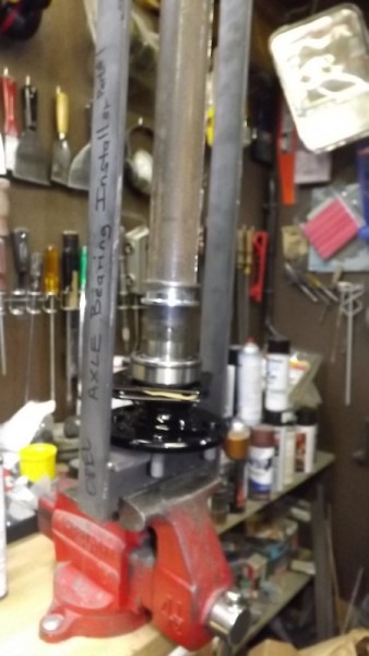 We pressed the axle bearings onto the shafts with the retainer plates properly positioned and Dust Shield Into Jeff's Homemade Axle Press