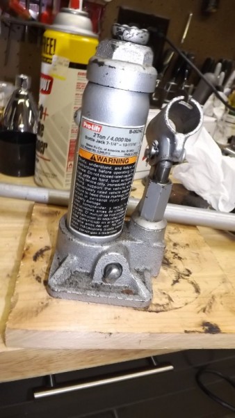 It a bit to align everything up before using small bottle jack to press.