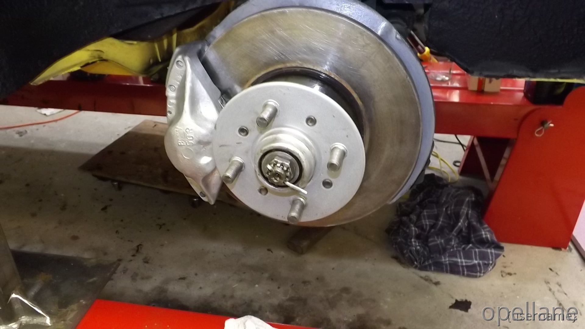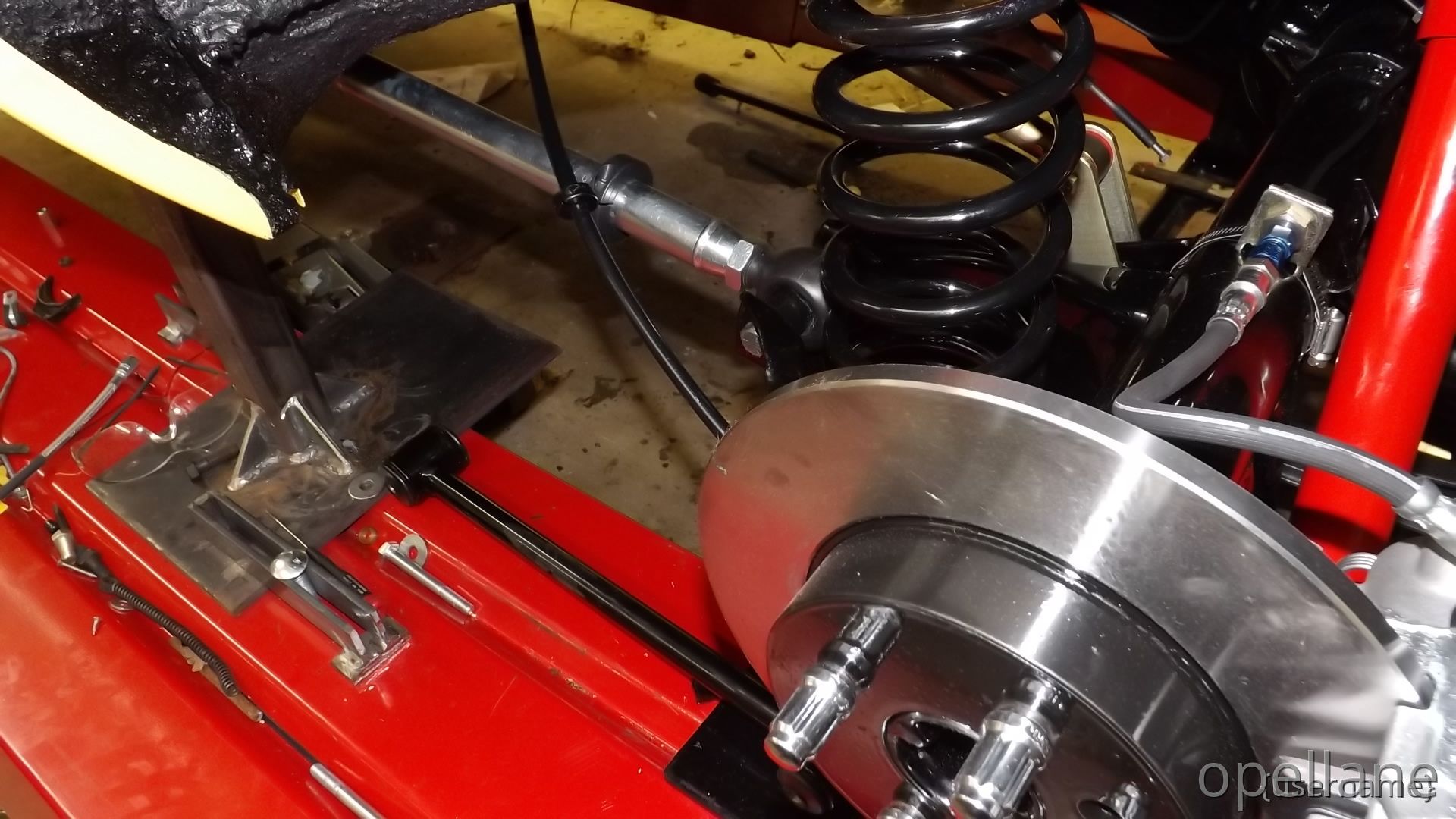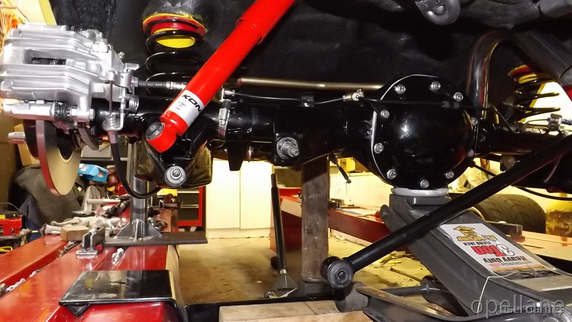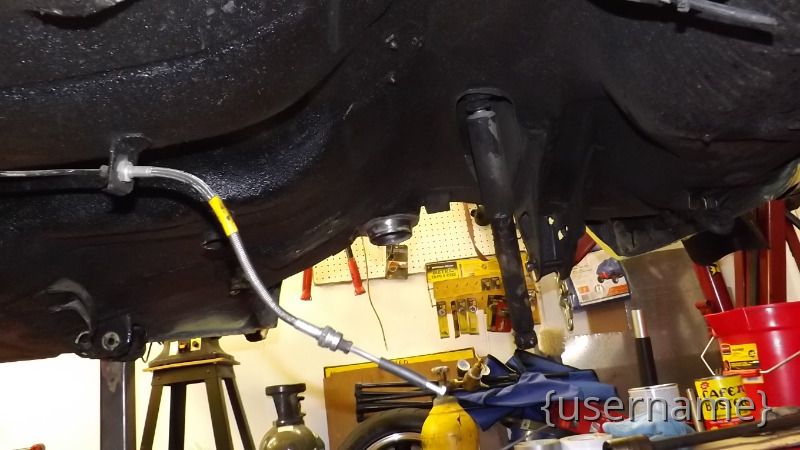 I've cleaned and re-under coated the bottom, Installed the rear sway bar and started to install the red Koni's I also Installed the front Big Brakes to the front wqth new SS braided hoses. that came off the Blue GT. My plans are to eventually , replace new bigger master cyl. and booster then replace the hard brake lines.