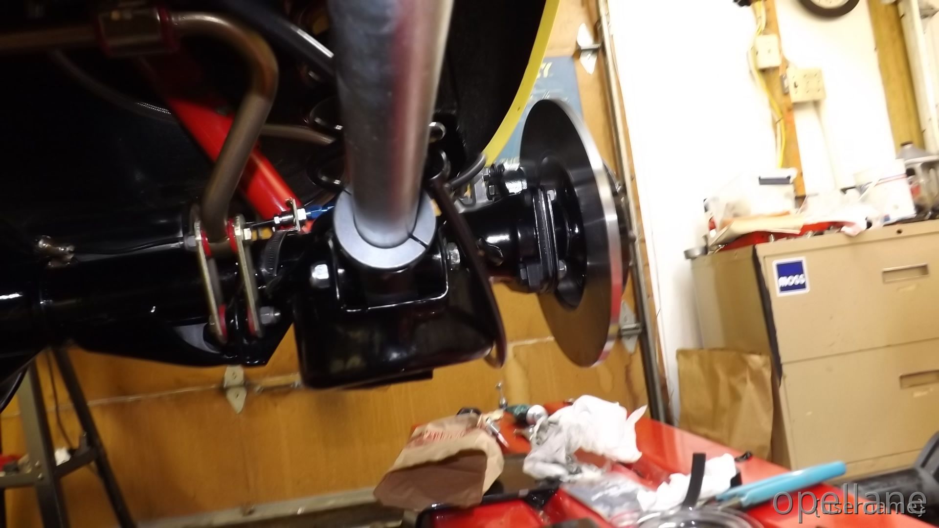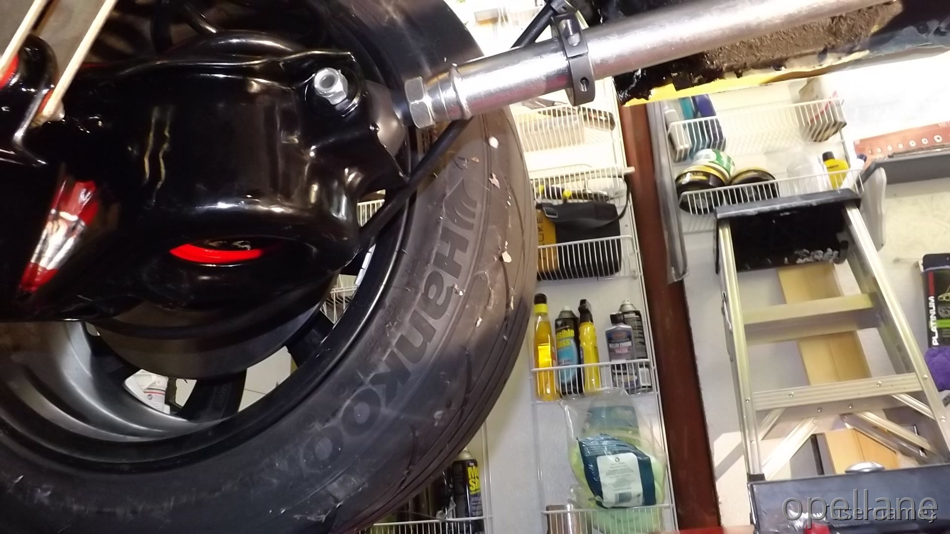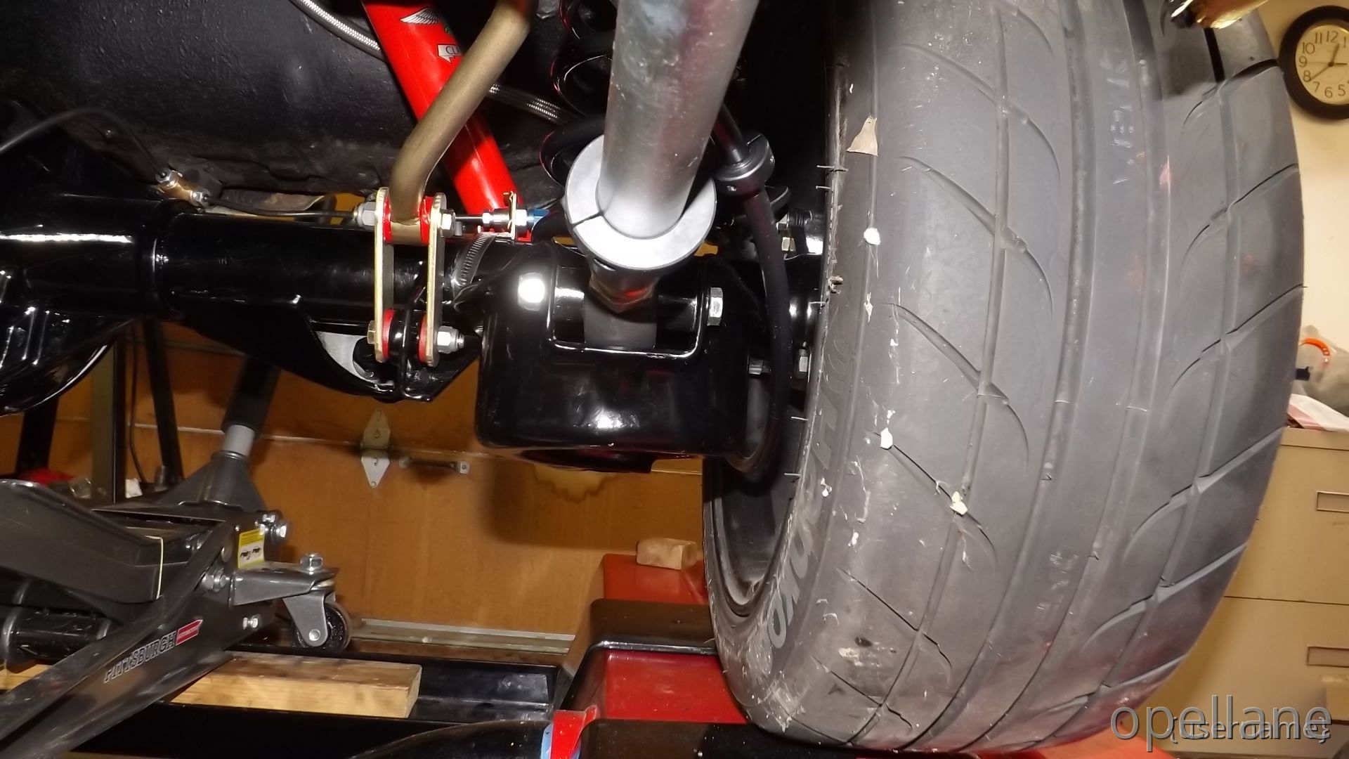 I've cleaned and re-under coated the bottom, Installed the rear sway bar and started to install the red Koni's I also Installed the front Big Brakes to the front wqth new SS braided hoses. that came off the Blue GT. My plans are to eventually , replace new bigger master cyl. and booster then replace the hard brake lines.