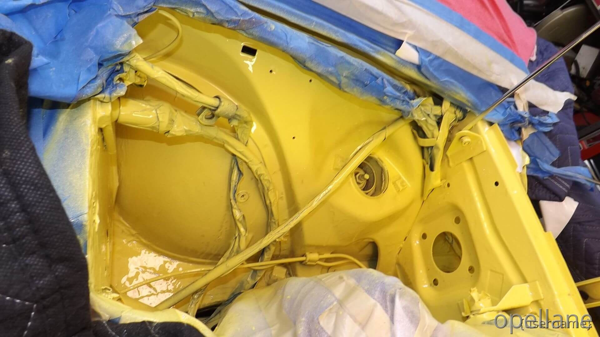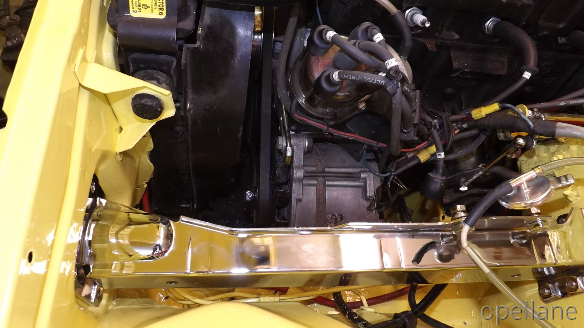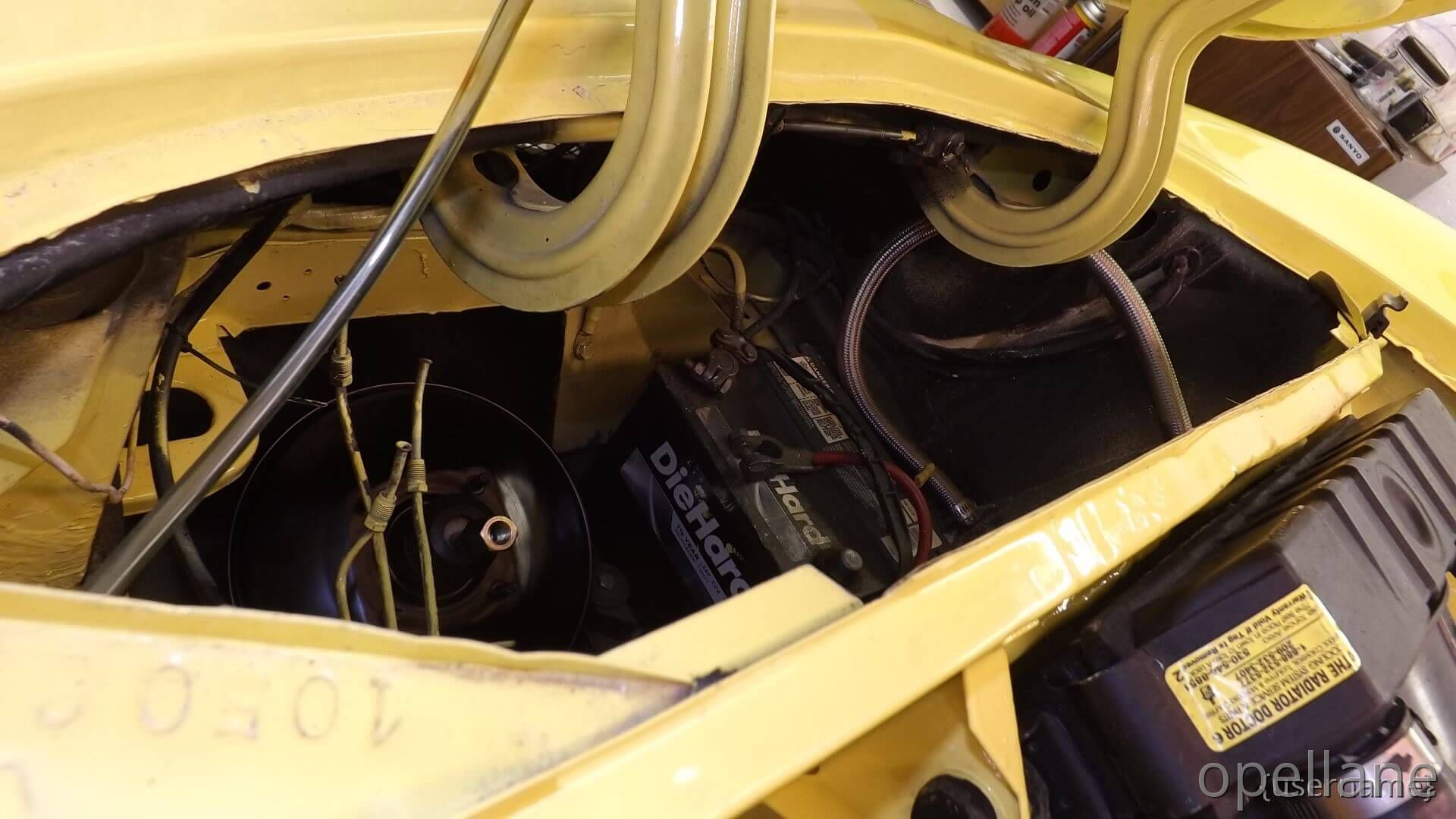 Now One Half of the GT Engine Bay / Compartment is Painted Citrus Yellow. Matching Paint.. Original Paint Chrome Yellow ""LQQKS GOOD to me""