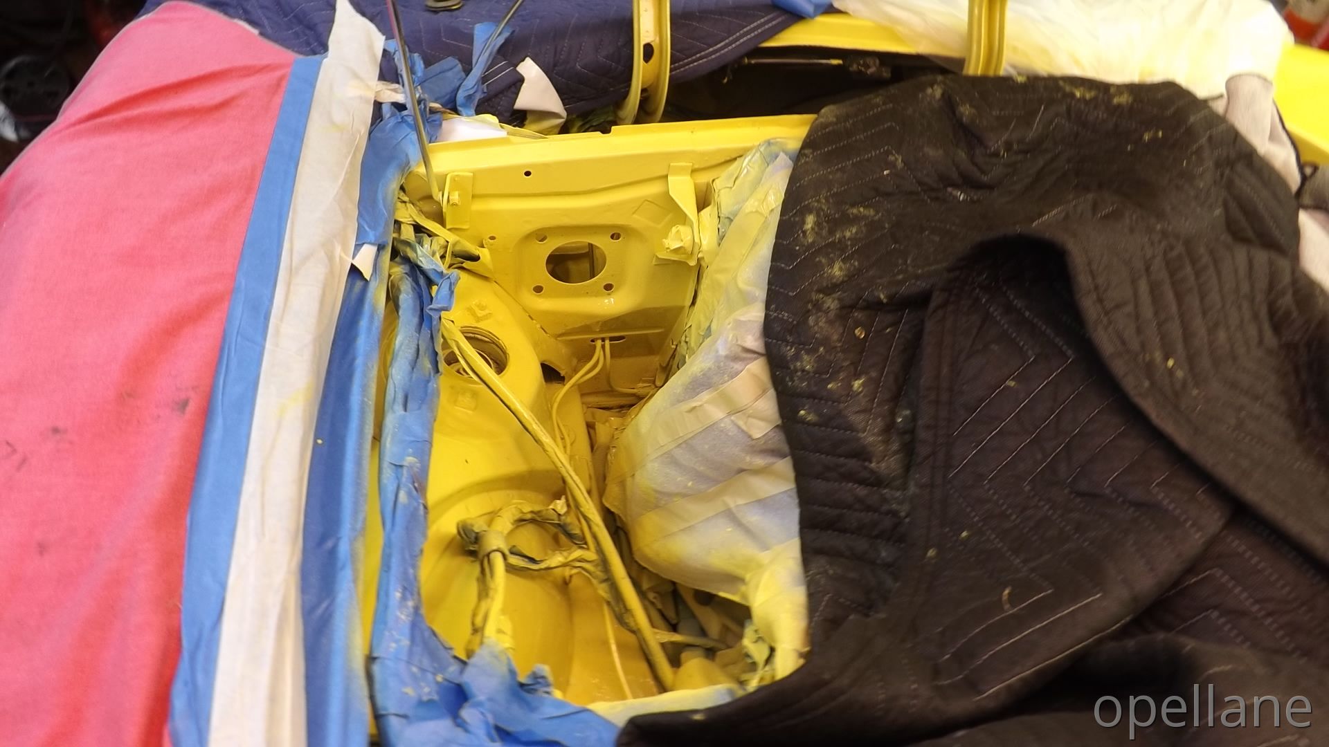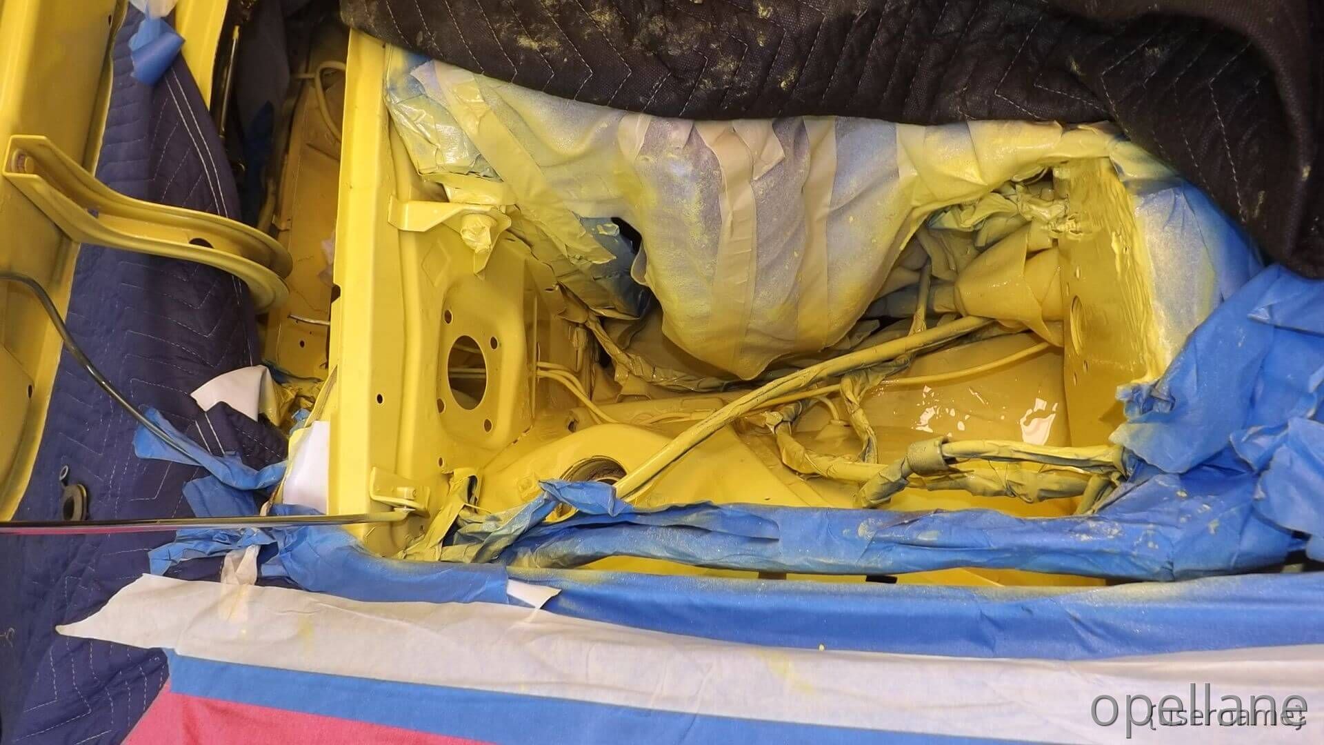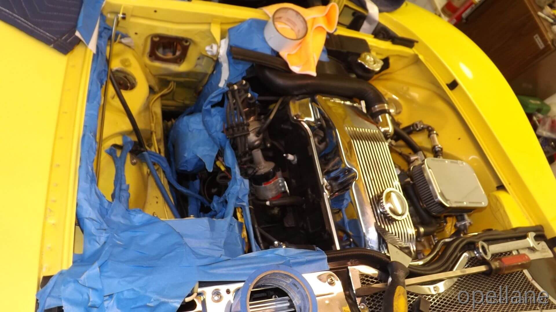 Now One Half of the GT Engine Bay / Compartment is Painted Citrus Yellow. Matching Paint.. Original Paint Chrome Yellow ""LQQKS GOOD to me""