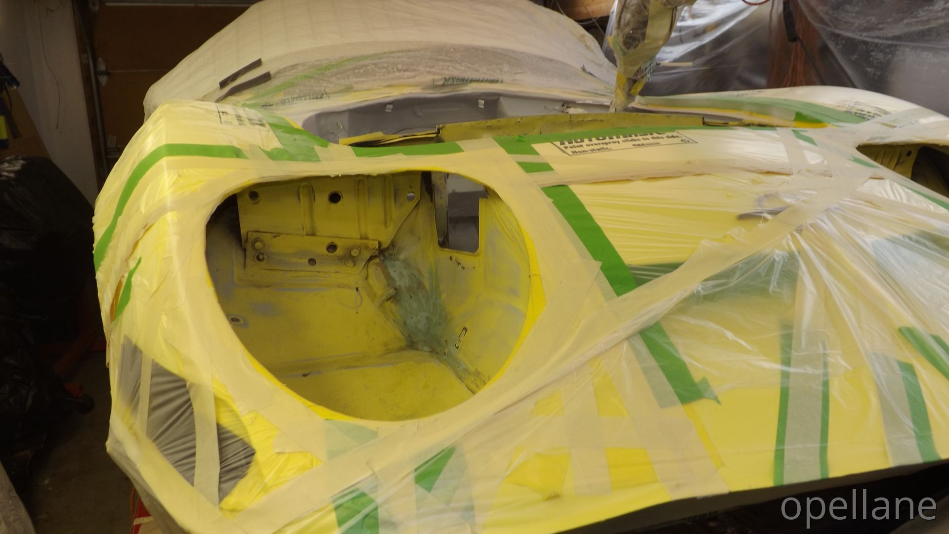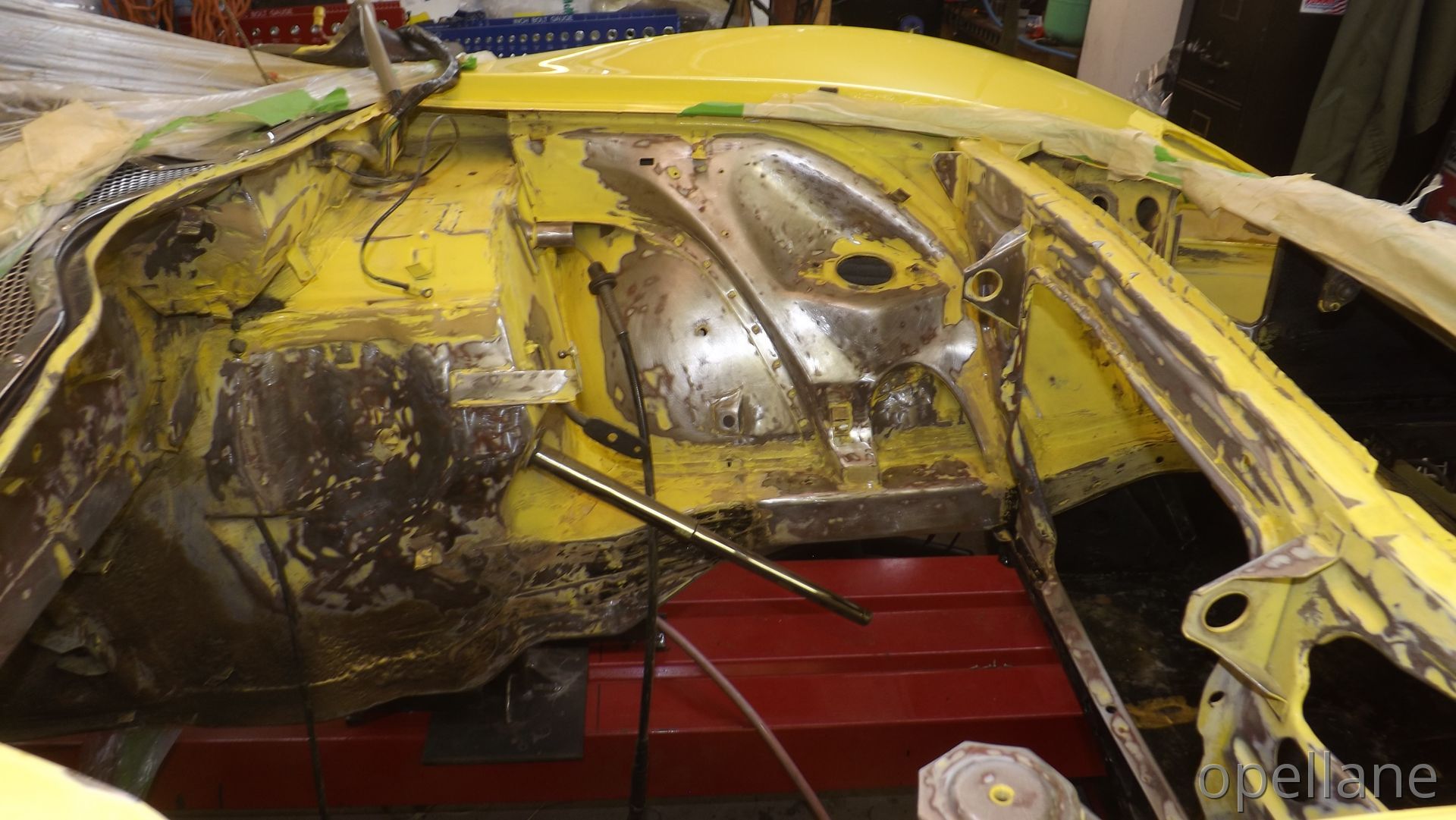 The Front Suspension ready to Go back, after The Motor.... so I have time.now, to strip and repaint the engine bay back to the matching Yellow color... Am not Big on Black Engine Bays,, no,no takes away from the details... So Big Job now getting the Engine Bay Prep... and to get the Complete GT Mask and covered for the Paint and sanding Over Spray..Etc ..