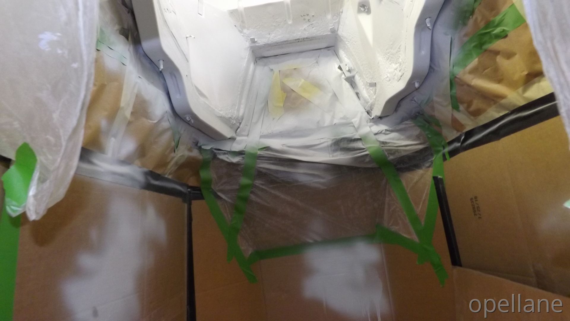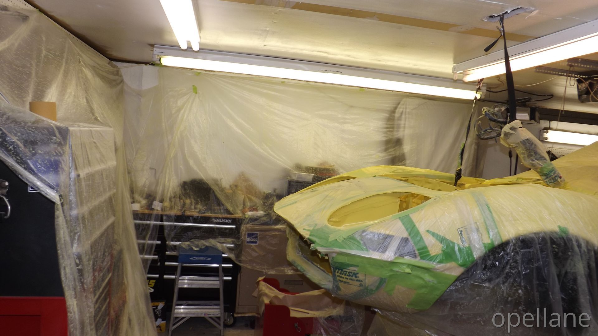 To control some of the over spray , I built a small tunnel out of Cardboard that is taped to the Tunnel and the garage floor,, This also stops the over spray to the Bottom and back of the car.. I hope it works,,