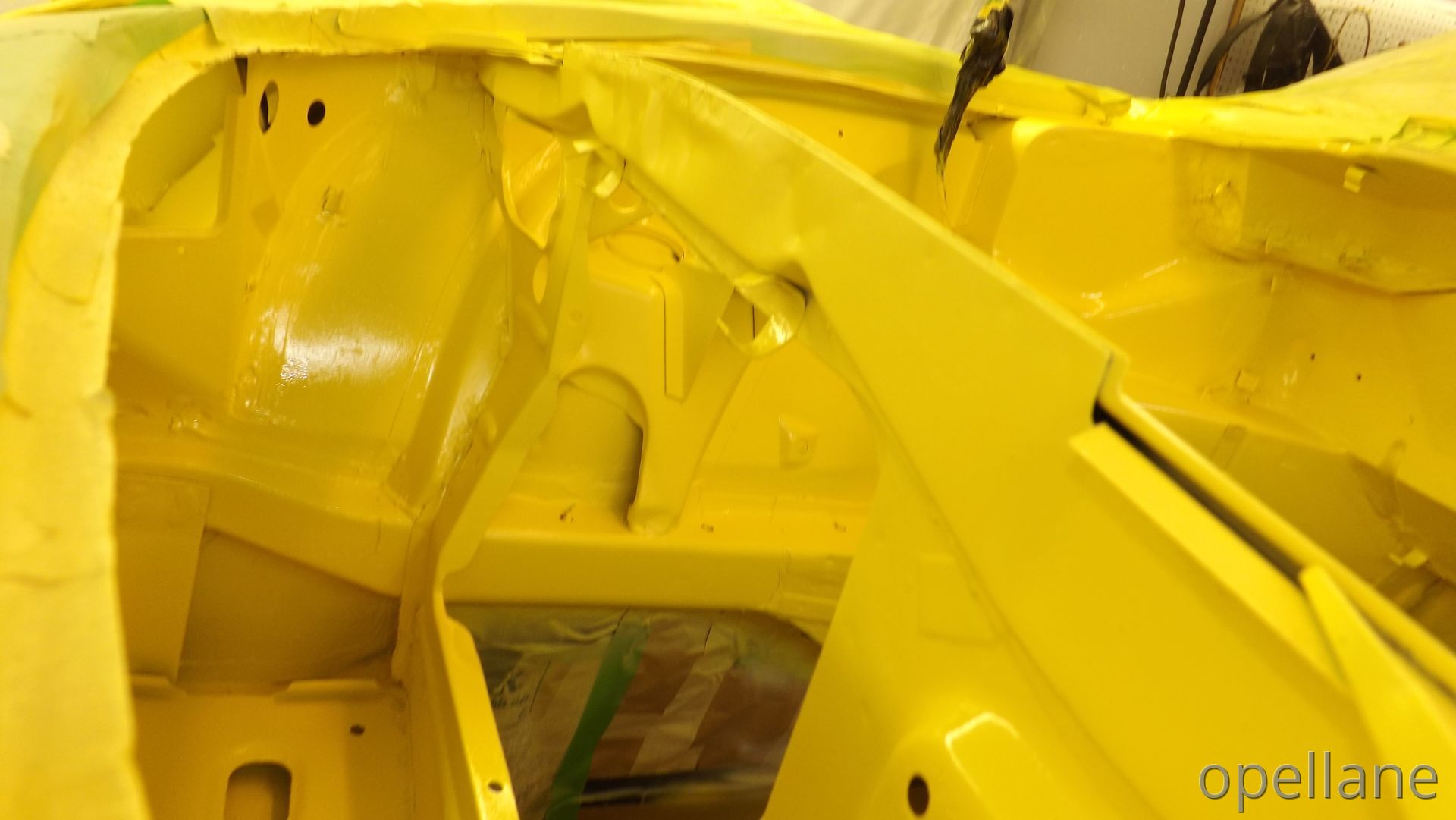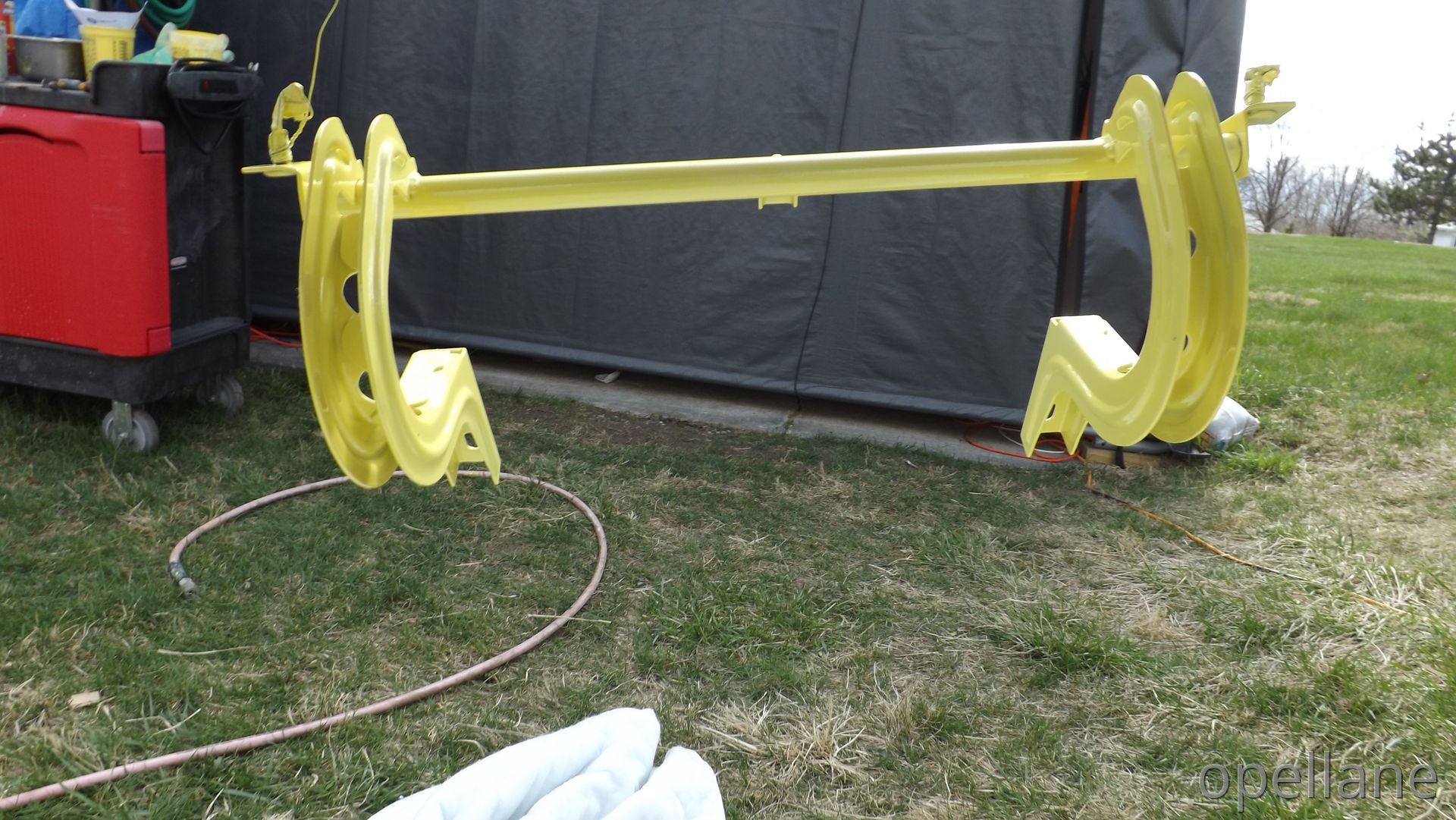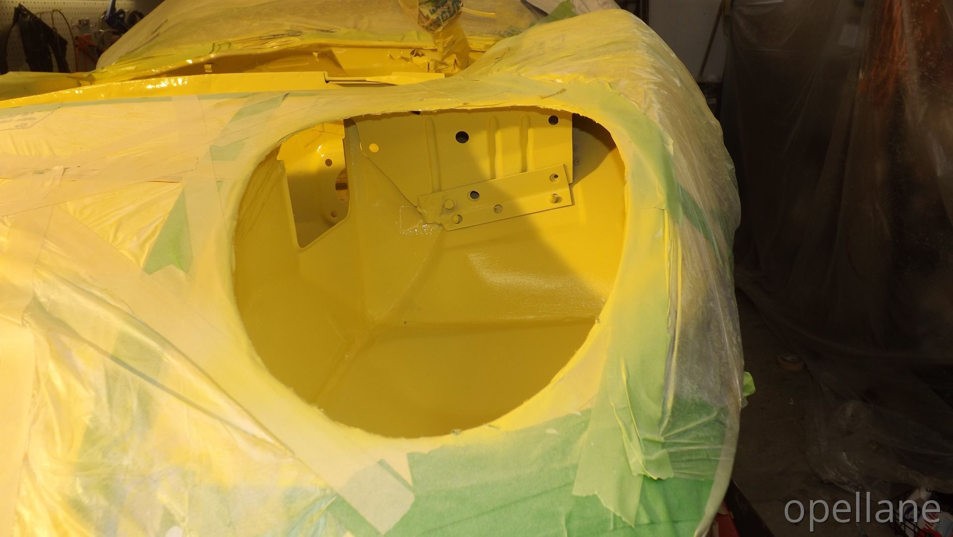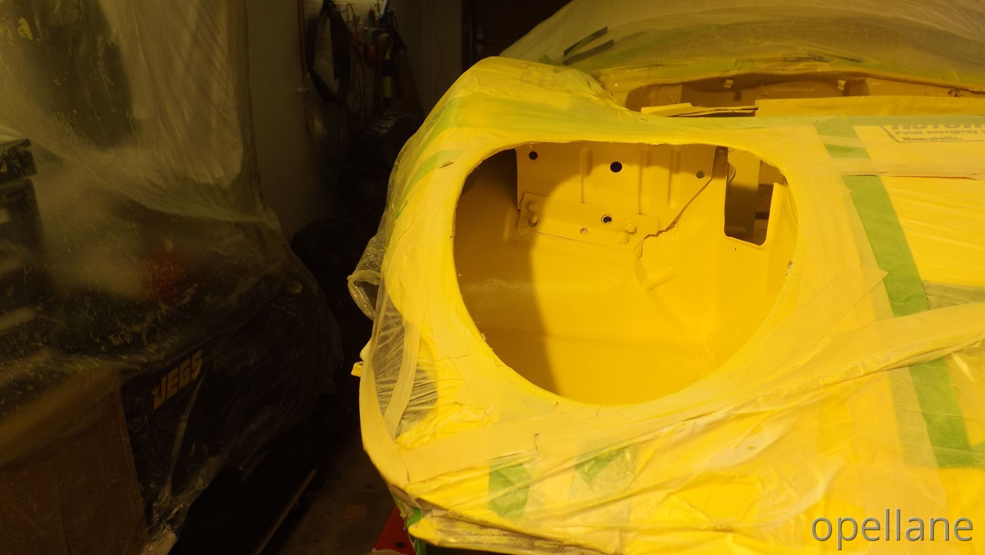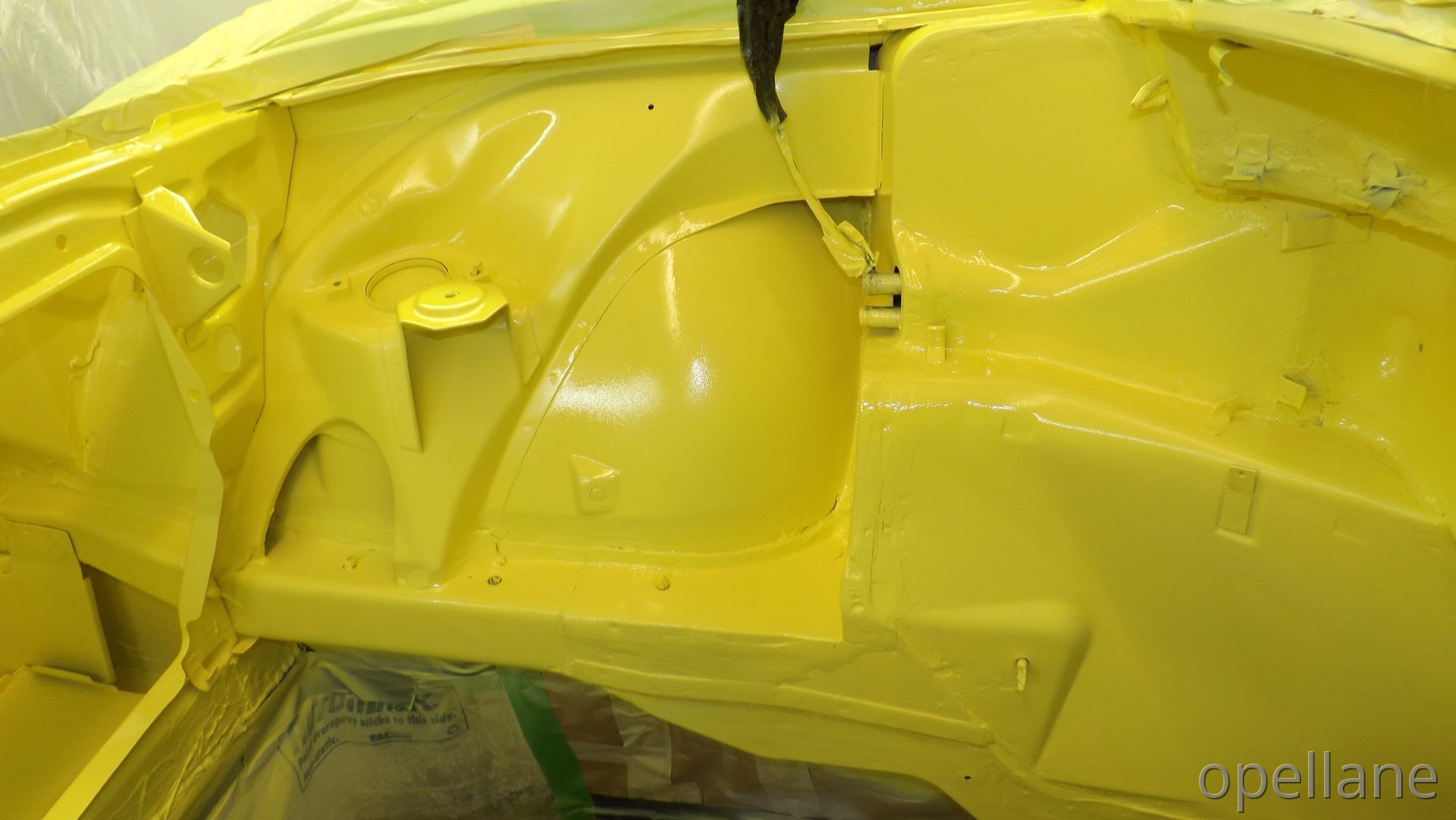 I've finished with the engine bay painting Yellow, This job turned into a lot of work. I'm no Body Shop Painter that's for sure, Got a lot of orange peel, I ran into problems setting up the China Freight Spray Gun, I think next time, buyer better sprayer gun..